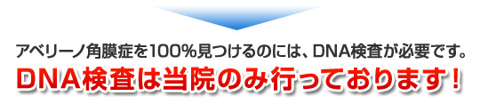 最近“アベリーノ診察をしている”と他のクリニックで宣伝をしているようです。アベリーノ角膜症は遺伝子疾患ですので、DNA検査を行わないアベリーノ診察では確実に診断することができません。 ![]() |