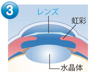 角膜を約3ミリ切開し、切開した部分から後房型レンズを挿入します。