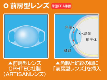 虹彩と水晶体の間に後房型レンズを置きます。