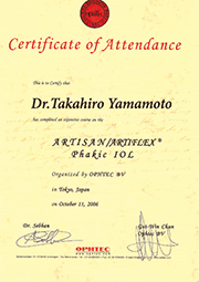 当院ではOPHTEC社より、フェイキックIOLの技術を認められ、多数の医師がOPHTEC社のARTISAN/ARTIFLEXライセンスを取得しています。