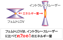 フェムトLDVの場合、エネルギー量が小さいため、角膜の組織に与えるダメージも少なく、眼への負担が最小限で済むので、術後の炎症が少ない利点があります。