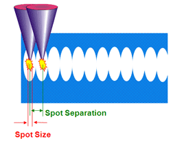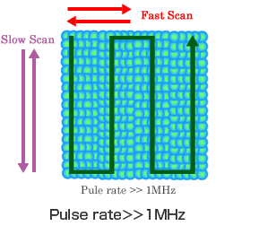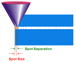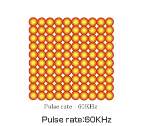 レーザーが照射される部分が重複するので、スポットに隙間が生じない為、フラップリフトが容易にできる。