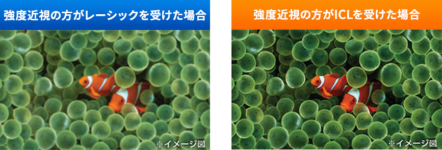 強度近視の方がレーシックを行うと、不正乱視が発生し見え方の質が下がる場合があります。ICLは角質を削らないので、不正乱視の発生を抑制でき、見え方の質を下げる事なく、クリアな世界が実現します。