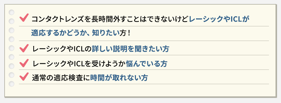 ※ コンタクトレンズをご使用の方は、コンタクトケースをお持ち下さい。